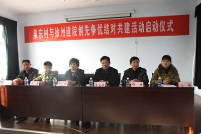 1123,建筑装饰艺术公司与徐州贾汪区泉东村开展了“创先争优结对共建”启动仪式。公司党委副书记、纪委书记吴光林,公司党委组织部部长徐勇,党委宣传部部长方桐清,党院办公室副主任胡永,建筑装饰艺术公司党政领导、全体教工党员和员工党员参加了活动。
