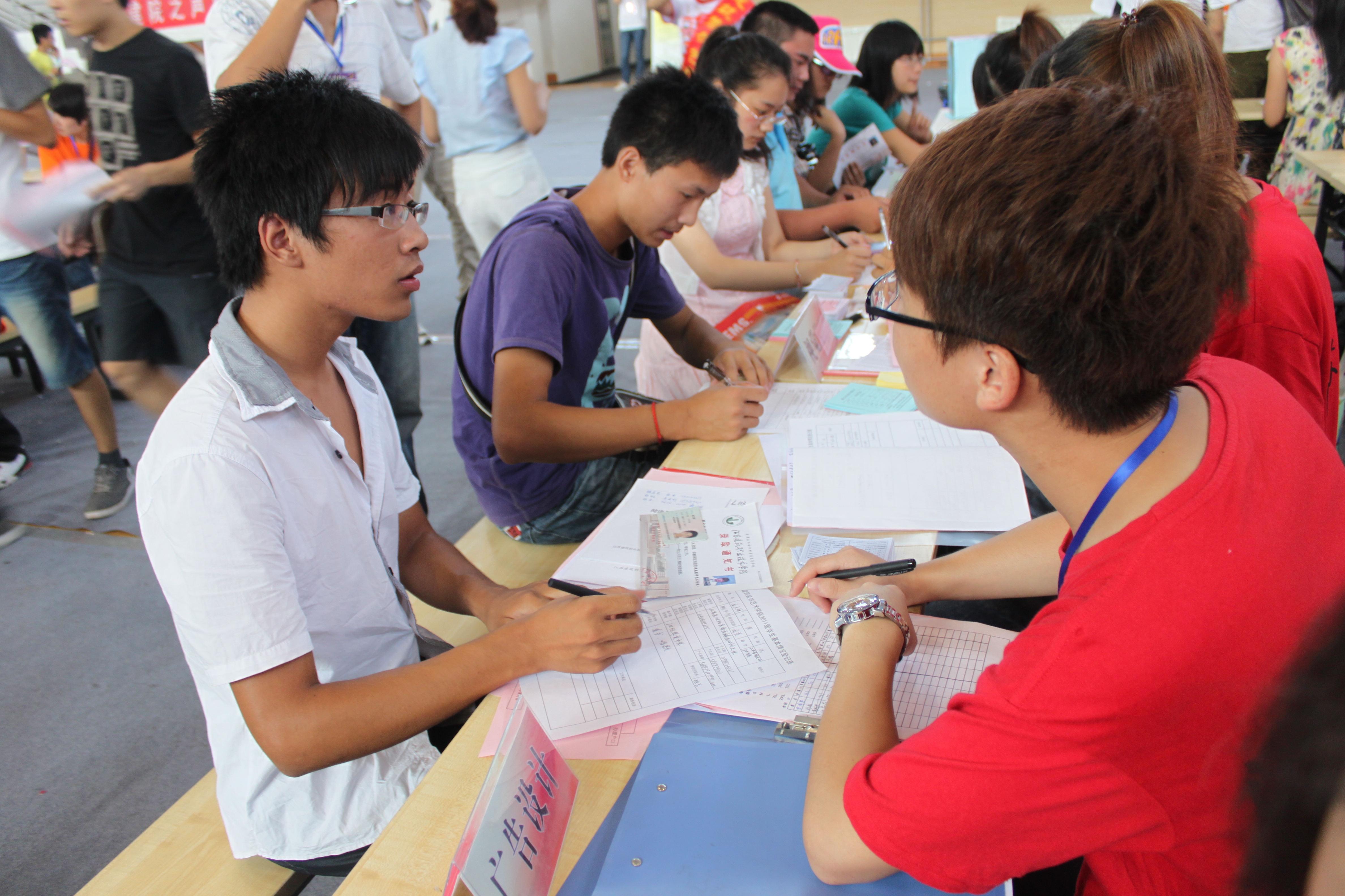 民族生阿卜杜瓦日斯.阿卜杜合力力报到,班主任江向东老师热心关怀,带领办理全程手续