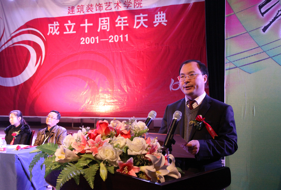 徐州市装饰装修行业协会秘书长严孝友代表行业协会在发言中说,我作为建筑装饰专业指导委员会的委员,亲身见证了建筑装饰艺术公司的发展。十年来,建筑装饰艺术公司开拓创新、锐意进取,主动适应社会、适应行业的发展,培养企业紧缺人才,为社会输送了3千多名优秀毕业生,为江苏乃至全国建筑装饰行业、企业人才培养作出了突出的贡献。徐州三分之二以上的装饰公司均有建筑装饰艺术公司的员工发挥骨干作用,人才培养质量广受赞誉。