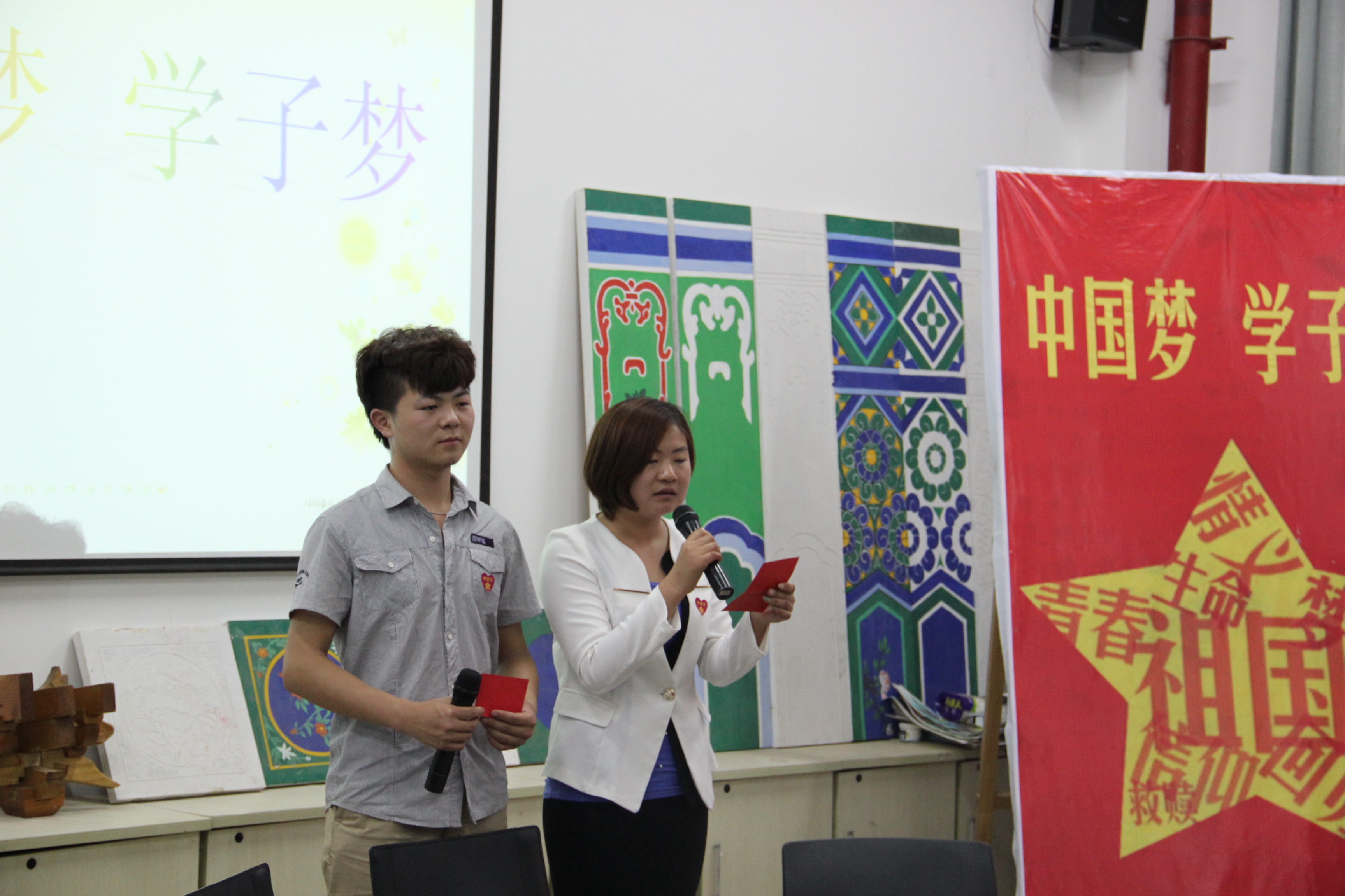 集团志愿之星--模具10-1班李佩、公司创业之星--室设11-1班薛路路、公司奖学金获得者少数民族员工—建设11-2班边巴东周(藏族)、复转军人--室设12-1班田斌等四名员工身边的榜样参加了班会。他们结合自己的专业、经历阐释了如何将自己的“学子梦”融入到“中国梦”中去,如何通过实际行动来实现自己的梦想。