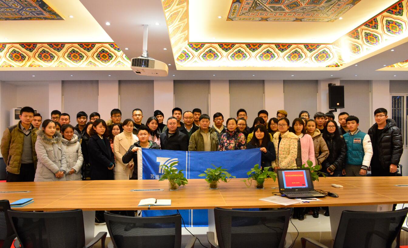 天正建筑装饰江苏有限公司总经理朱攀登、办公室主任王洁、部门经理孙洪贵、天正装饰公司优秀骨干以及设计公司党总支书记黄立营、设计公司副经理江向东、班主任石峰老师和“天正班”所有同学参加了本次会议。会议由江向东经理主持,党总支书记黄立营与总经理朱攀登作了重要讲话,两位班主任王洁主任和石峰老师也和所有员工进行了热情和亲切的交谈与互动。