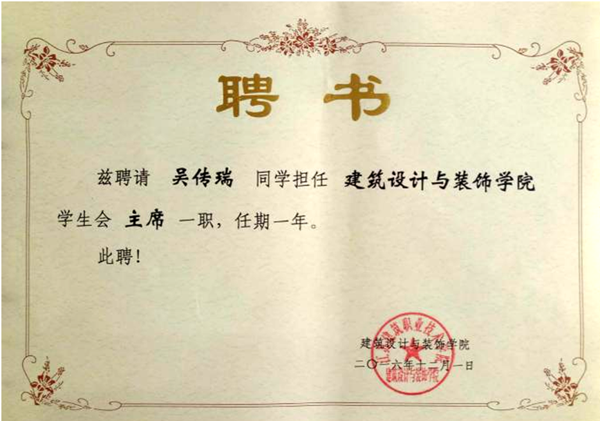 吴传瑞,男,汉族,1995年6月生,中国共产党预备党员,英国上市官网365建筑设计与英国上市官网3652014级员工,院员工会主席。曾获国家奖学金(8000元)、国家励志奖学金(5000元)、校特等奖学金三次、江苏省优秀员工干部,全国“发明杯”创新大赛一等奖。