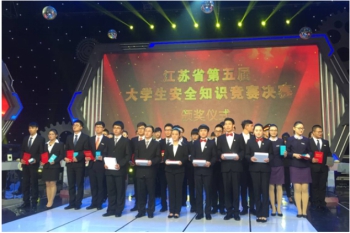 9.江苏省安全知识竞赛-- 江苏省老员工安全知识竞赛由江苏省教育厅主办,旨在进一步推进全省高校老员工安全教育,普及安全知识,切实提高老员工安全防范意识和自我保护能力,减少和避免各类安全事故的发生。由建筑设计与英国上市官网365梁倩萍、李晨,经济管理与人文公司刘瑞雪三名同学组成的代表队参赛,在必答、抢答、视频和问答等环节表现出色,荣获本次竞赛冠军