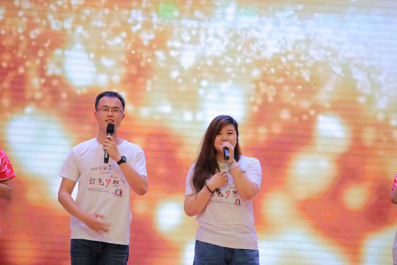 晚会环节,既有老师的歌唱祝福,毕业生和在校生的组合表演,也有老师与员工的互动。炫酷的街舞,幽默的相声和小品,生动形象的朗读,悦耳动听的歌唱,精彩的节目让大家目不转睛。精彩的节目也冲淡了毕业生的离愁别绪,整个典礼在一曲“再见”中收尾。