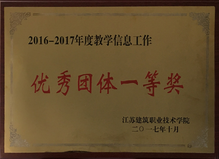 10月18日 ,公司公布了《关于表彰2016-2017学年教学信息工作优秀团体、优秀信息员的通知》(苏建院教〔2017〕18号),我院荣获2016-2017年度教学信息工作优秀团体一等奖。