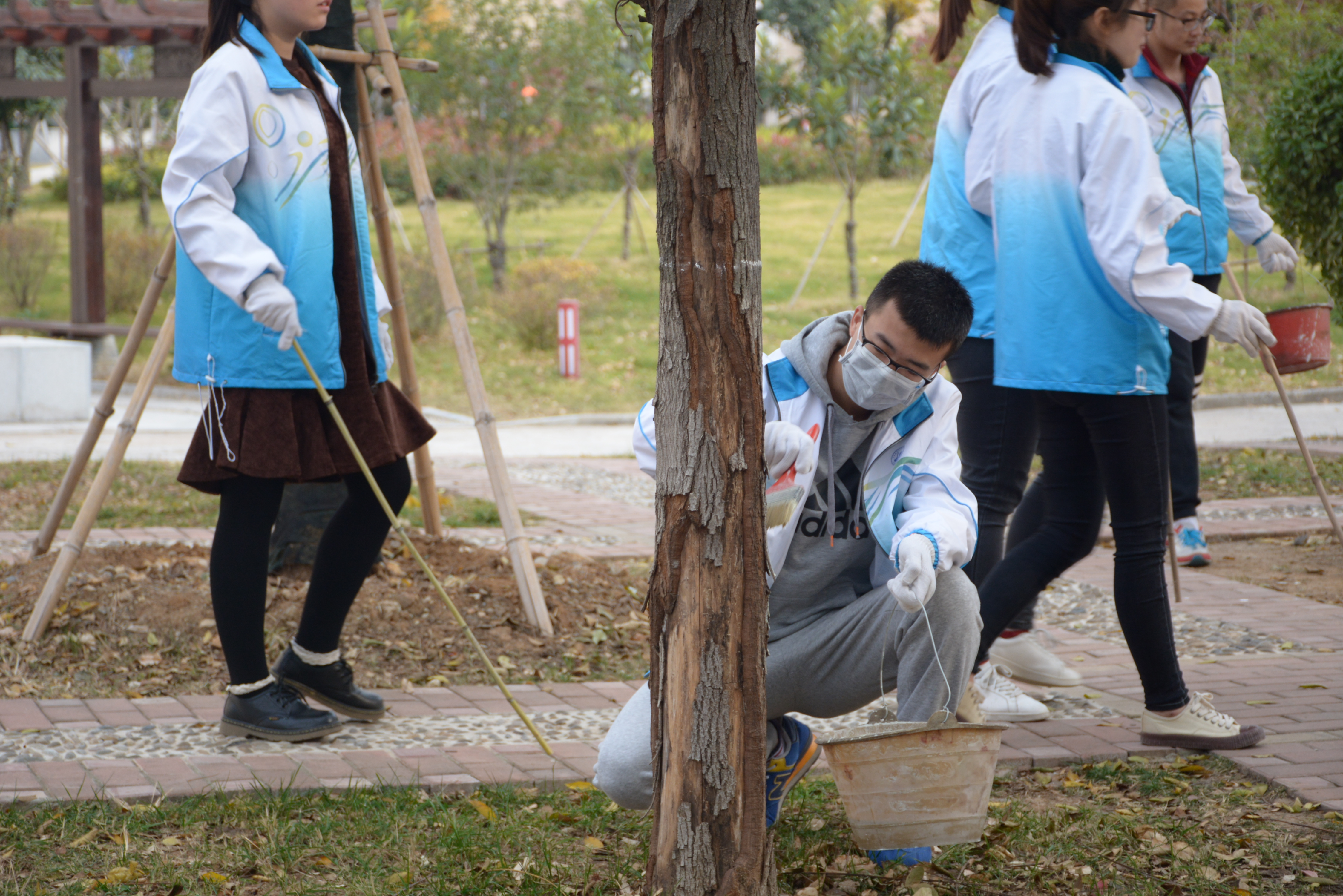近日,天气转冷,气温下降,为加强园林绿化树木的冬季管理,增强树木抗寒防寒防冻防虫能力,确保树木安全过冬,公司组织养护工人对校内的树木进行刷白,作为园林专业员工当然要首当其冲,参与到美化我大建院校园的活动中来。