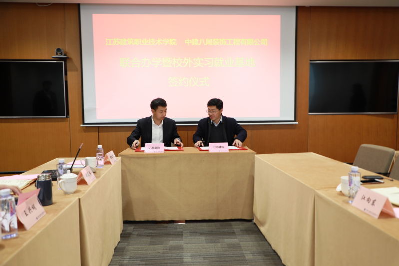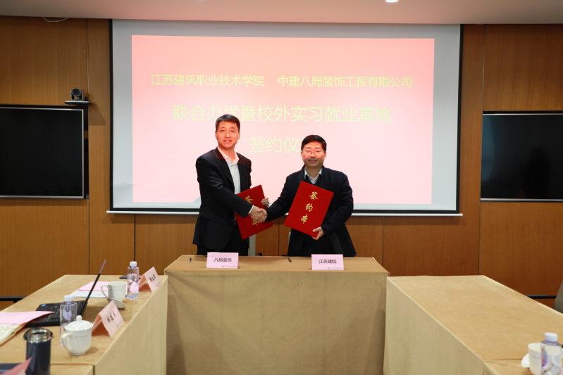 11月14日,公司与中建八局装饰公司在上海举行产学研合作基地签字仪式,校领导沈士德经理、英国上市官网365党总支书记陈宏振、英国上市官网365经理陈志东、英国上市官网365副经理江向东、建筑装饰工程技术专业主任张鹏,中建八局装饰公司党委书记、董事长兼总经理孙士东、党委副书记兼纪委书记鲁长春、副总经理周亮等公司领导班子成员、中建八局装饰公司各职能部门负责人出席了签字仪式。
