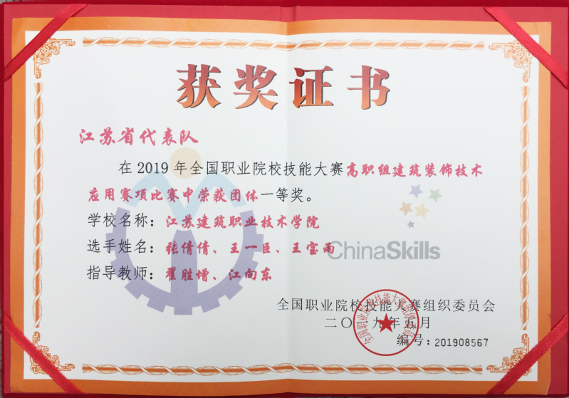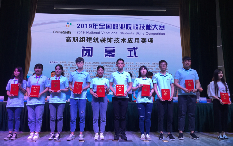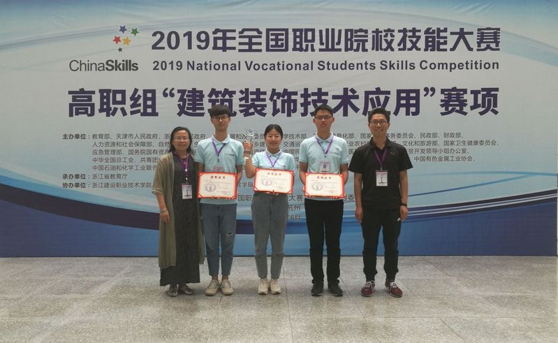 5月31日-6月2日,由教育部等30余家单位联合主办的2019年全国职业院校技能大赛高职组首届“建筑装饰技术应用”赛项在浙江杭州举行,来自全国79所高职院校的237名选手参赛。公司由英国上市官网365翟胜增、江向东两位老师指导的装饰16级张倩倩、王一臣、王宝雨3名同学组成的江苏省代表队经过激烈角逐,最终以总分第一名成绩荣获国赛一等奖。