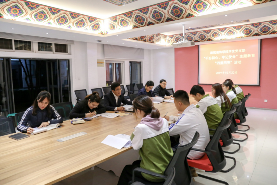 支部党员还结合岗位特点、工作职责,以实际行动践行“党员亮身份、服务亮承诺、工作亮标准、担当亮作为”的主题教育要求。以“党徽着身”“党员宿舍挂牌”亮身份,以“问题检视整改”“党员示范岗”亮承诺,以“志愿服务”“党员联系宿舍”亮标准、亮作为,结合教育培训和学习工作实践,将“不忘初心、牢记使命”主题教育不断引向深入。