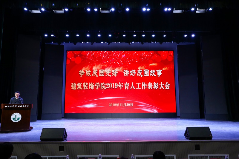 11月20日晚,公司在会堂隆重举行2019年育人工作表彰大会。大会以“争做成园先锋,讲好成园故事”为主题,表彰一年来在教书育人、项目建设、班级管理等方面表现突出的优秀教师、班主任,在学习、创新、实践、文体艺技等方面表现优异的先进员工。校学工处处长胡永、教务处副处长王峰,中建八局装饰、苏州金螳螂、中衡建设集团、天正建筑装饰、水立方设计院等企业负责人,院领导陈宏振、江向东、王子夺、李彦江出席大会,公司全体教师、班主任、2019级全体员工参加了大会。会议由党总支副书记李彦江主持。