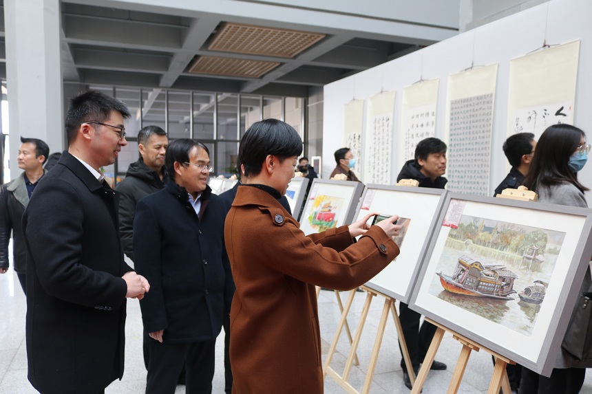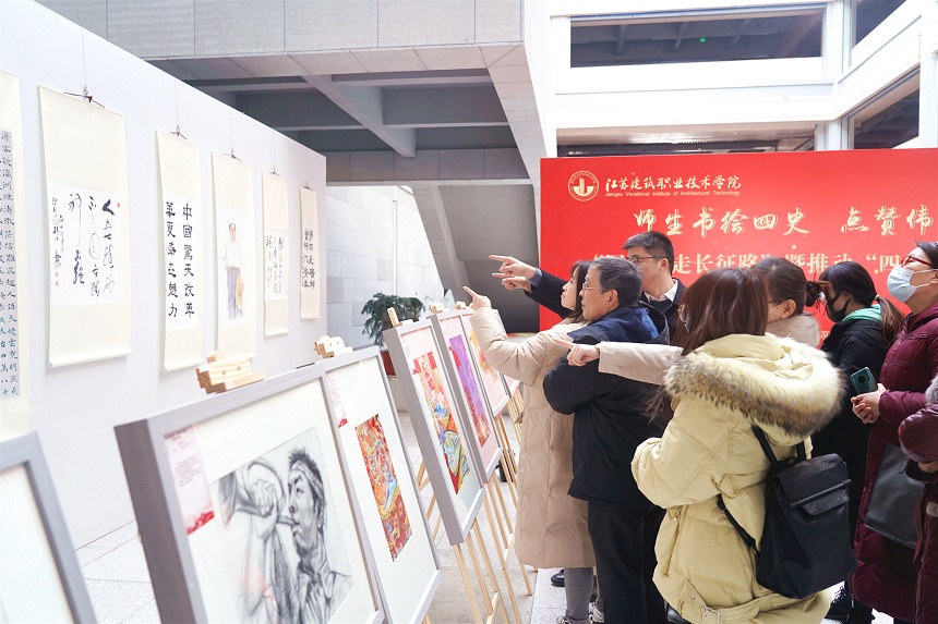 书画展紧紧围绕党史、新中国史、改革开放史和社会主义发展史的学习,以“师生书绘四史,点赞伟大祖国”为主题,共展出由师生创作的35幅优秀书画作品,作品内容既包含嘉兴红船、跨雪山过草地、延安革命旧址等历史场景,也有表现长征五号火箭、辽宁舰、和谐号、复兴号等社会主义新时代的伟大成果。此次书画展是公司“网上重走长征路”暨推动“四史”学习的阶段成果,充分体现了师生深入“四史”学习,让初心薪火相传、把使命勇担在肩的精神风貌。