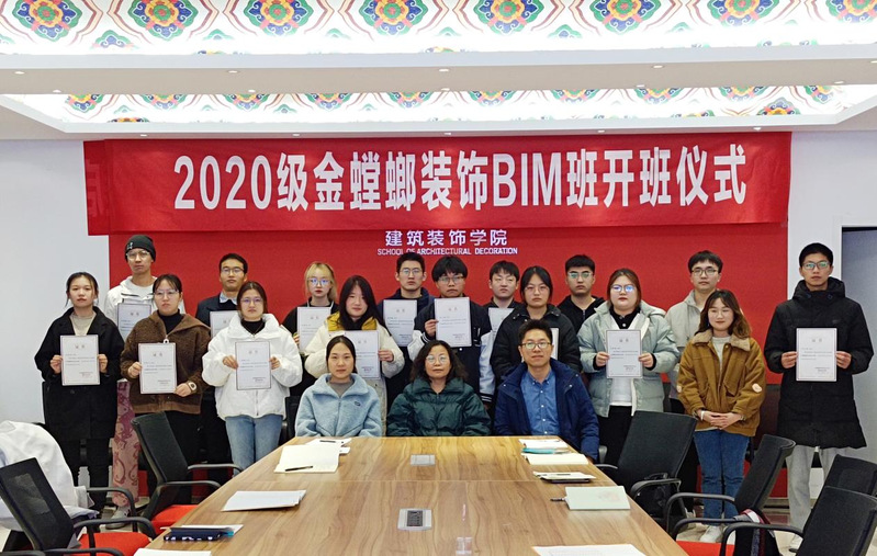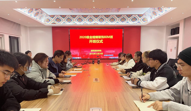 2021年11月25日晚,公司2020级“金螳螂装饰BIM班”开班仪式在公司会议室举行。开班仪式采用线上、线下结合的形式,苏州金螳螂建筑装饰股份有限公司BIM研究院经理郭智伟、BIM一所所长王将在线参加,英国上市官网365江向东副经理、驻校教师蔡甜甜、2名2019级企业班员工代表及15名2020级企业班员工线下参加了开班仪式。开班仪式由企业班班主任翟胜增老师主持。