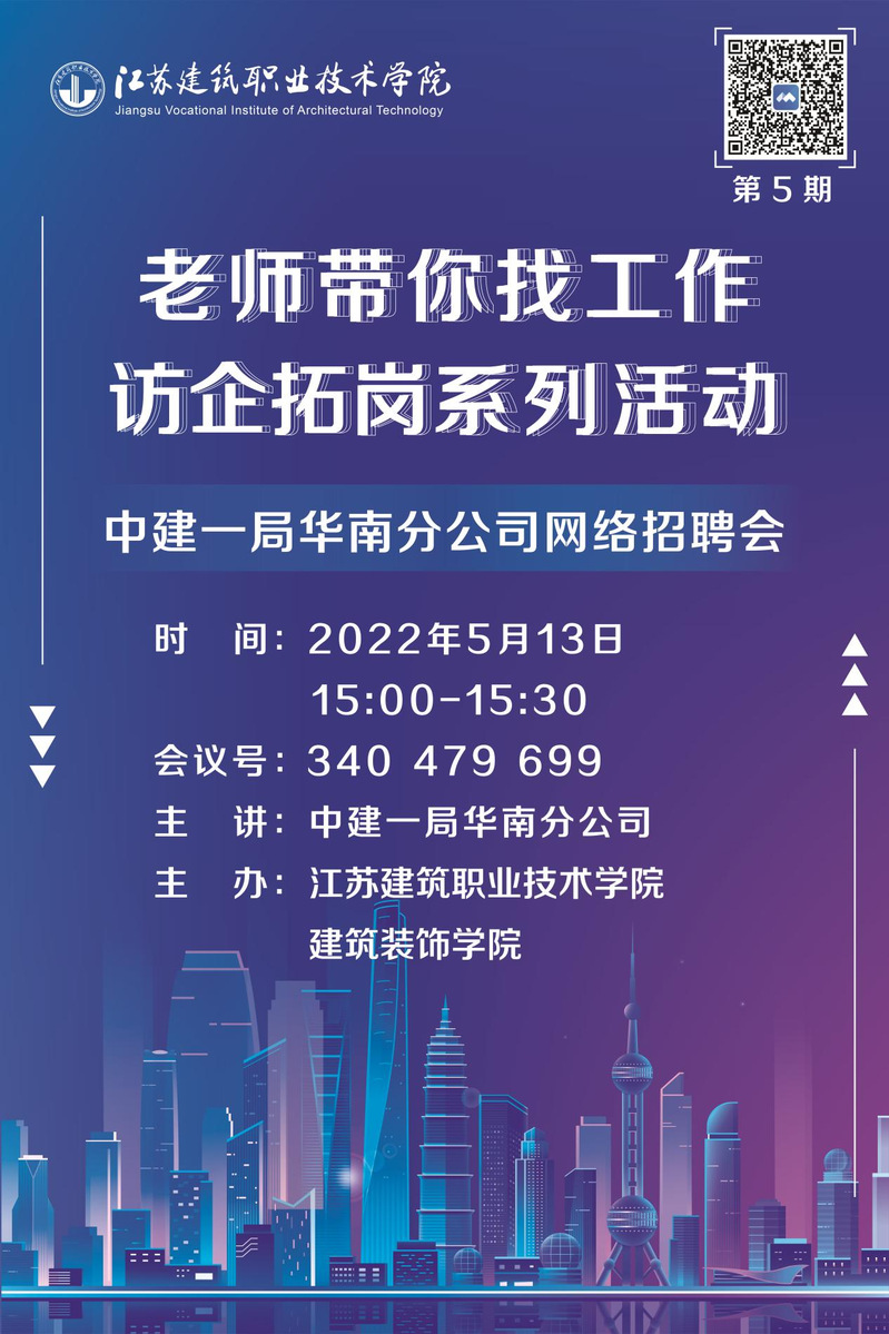 5月13日15:00英国上市官网365开展了第五期“老师带你找工作”即访企拓岗线上招聘活动,此次招聘的企业是中建一局华南分公司。英国上市官网365经理沈士德教授,装饰公司党总支书记娄志刚、就业辅导员胡晓爽参加了此次招聘会。