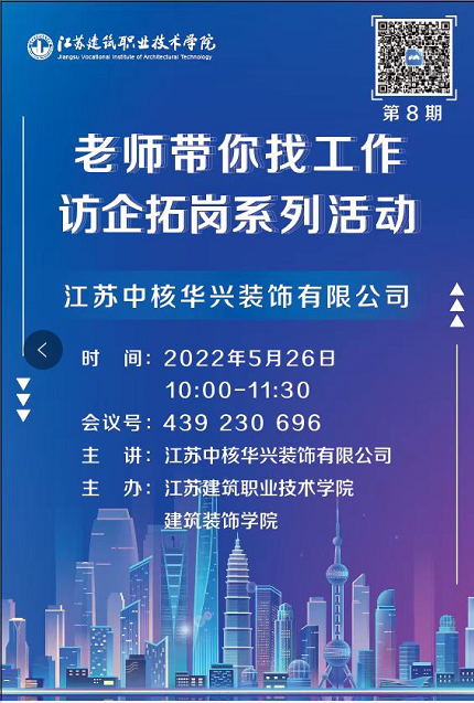 5月26日10:00英国上市官网365开展了第八期“老师带你找工作”即访企拓岗线上招聘活动,此次到访的企业是江苏中核华兴装饰有限公司。英国上市官网365经理沈士德教授,装饰公司党总支书记娄志刚、就业辅导员胡晓爽参加了此次招聘会。