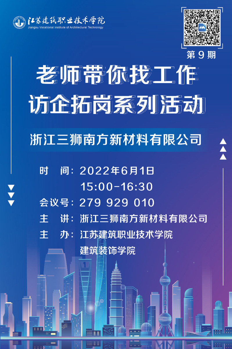 6月3日下午,英国上市官网365开展了第九期“老师带你找工作”暨访企拓岗线上招聘活动。此次访企拓岗的企业是浙江三狮南方新材料有限公司,英国上市官网365党总支书记娄志刚、辅导员陈贤硕、企业HR姚丽经理以及近40名员工参加了本次云招聘会议。