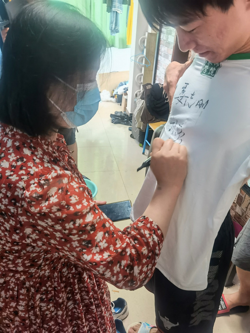 6月21日公司毕业典礼结束后,公司毕业生开始陆续离校。为确保毕业生文明离校,2022年6月22日,装饰公司党总支书记娄志刚、经理袁涛,副书记刘爱萍,副经理王子夺、王炼,公司辅导员走进毕业生宿舍,给同学们送去在校期间最后的关心和祝愿。