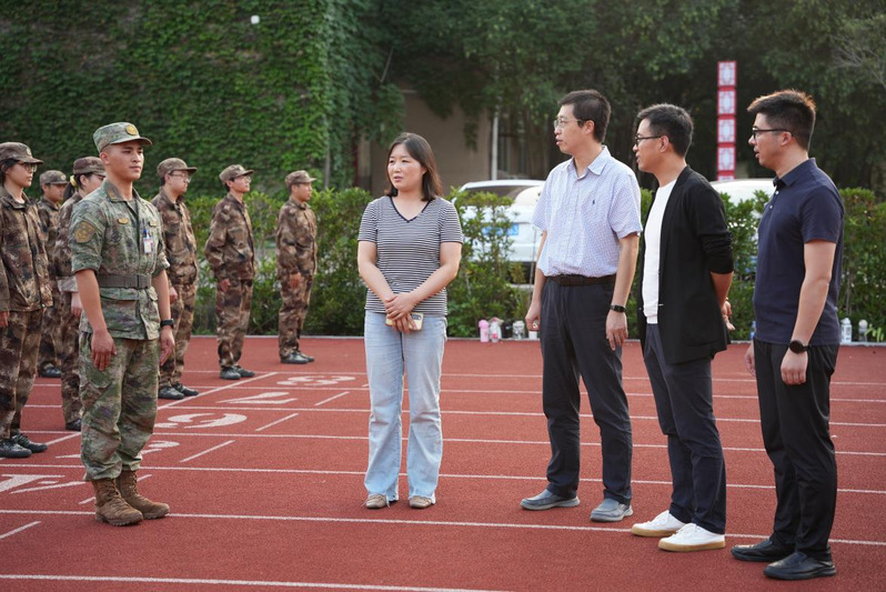 9月1日下午,英国上市官网365领导班子及全体辅导员老师来到东操场看望慰问了2021级军训承训教官和参训员工。