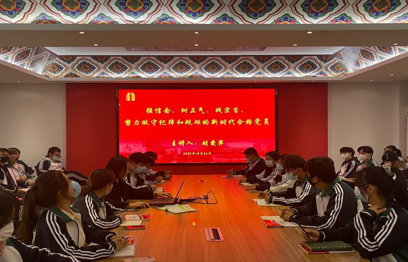 培训班上,装饰公司党总支书记娄志刚向全体入党积极分子专题讲授《中国共产党党史》,详细解读了党的发展历程,通过党史,阐明道理,解答青年政治上、思想上的困惑。校办公室副主任李彦江专题讲授《中国共产党章程》,通过对新党章对比学习,对党员的先进性要求有了更加清晰具体的理解。校宣传部副部长袁祯专题讲授《牢记初心使命,坚决维护两个确立——学习十九届六中全会和历史决议精神》,提出了要争做树立理想、学习本领、敢于担当新时代合格青年,始终在政治立场、政治方向、政治原则、政治道路上同以习近平同志为核心的党中央保持高度一致。装饰公司党总支副书记刘爱萍讲授《强信念、树正气、践宗旨、做守纪律和规矩的新时代合格党员》,要求全体入党积极分子坚定理想信念,提高党性修养,始终牢记全心全意为人民服务的宗旨,做守纪律懂规矩的新时代合格党员。校组织部副部长李国琴讲授《中国共产党的优良作风》,明确了做合格党员的标准,并将其作为自身行动的指引,做到内化于心、外化于行。辅导员张志荣老师组织入党积极分子一起学习入党积极分子培训教材、介绍党员发展程序,并强调不仅要从组织上入党,更是从思想上入党。