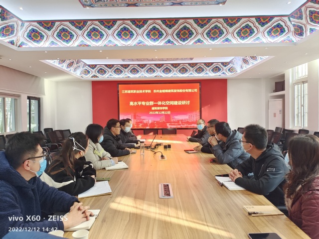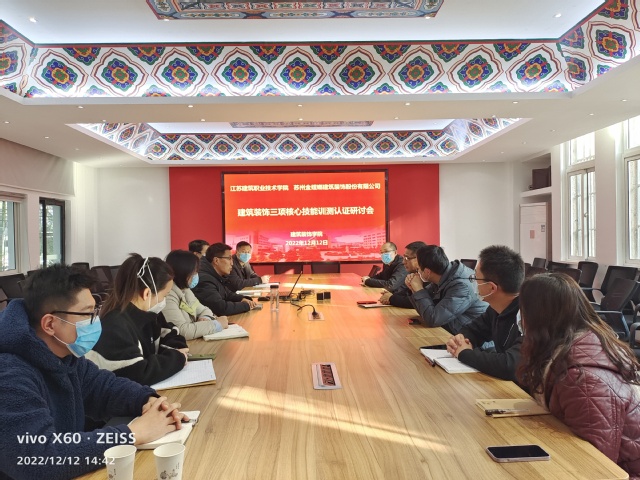 12月12日,英国上市官网365与金螳螂建筑装饰股份有限公司共同举办的建筑装饰三项核心技能训测认证暨高水平专业群一体化空间建设研讨会在公司召开。英国上市官网365党总支书记娄志刚、副经理袁涛及全体班子成员和部分专业主任参加了研讨会。