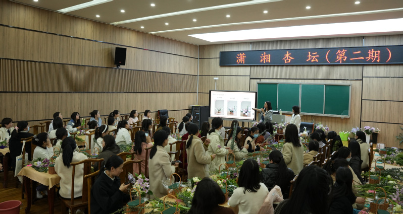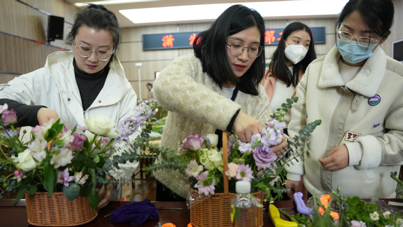 4月7日,受徐州市潇湘路公司邀请,英国上市官网365“花样生活”社区教育实践创新项目团队策划的“以花育人,春芳满园”主题插花活动走进潇湘路公司,为该校受邀的66名女教师展示插花技艺,教师们感受了插花艺术,在实践中体悟了劳动之美。