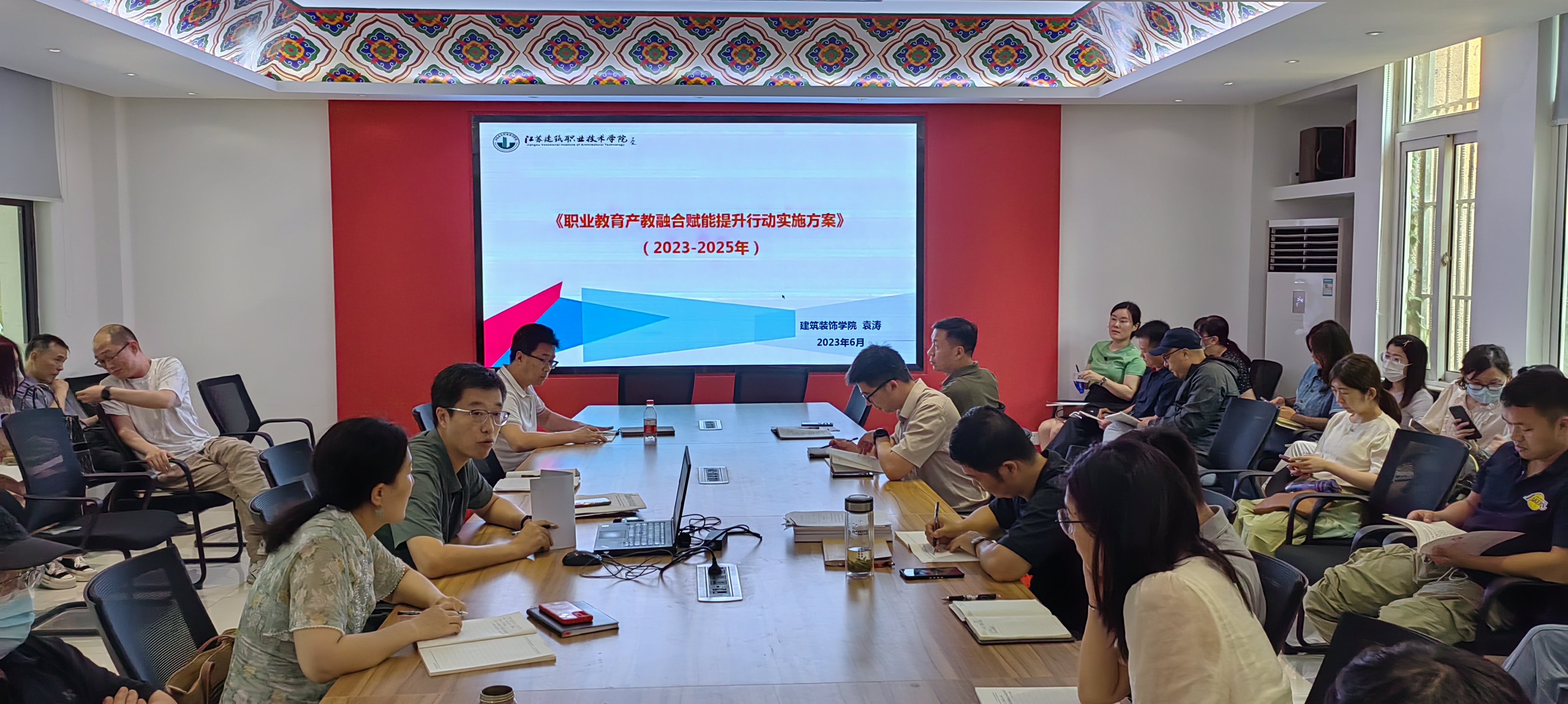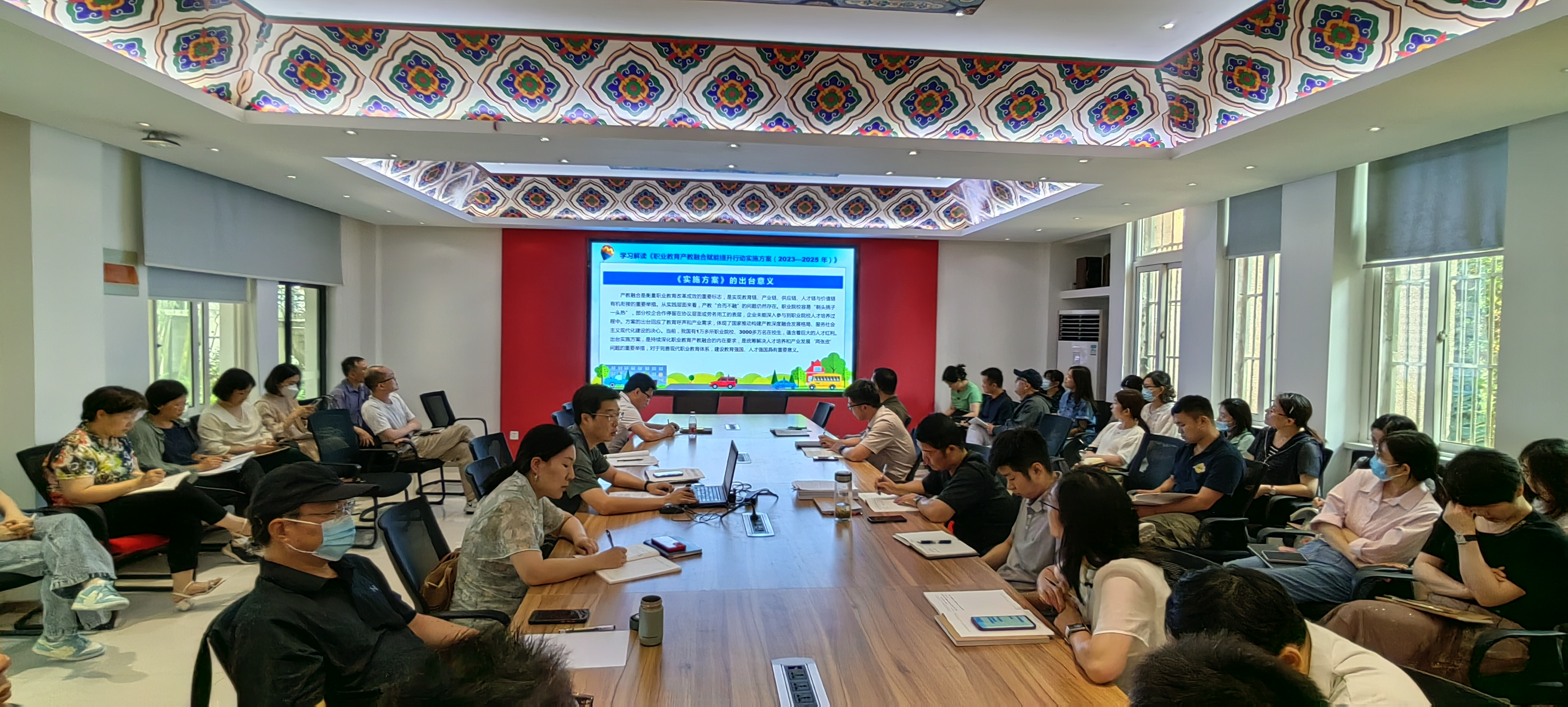 6月27日下午,英国上市官网365党总支开展主题为《职业教育产教融合赋能提升行动实施方案(2023-2035年)》的教职工政治理论学习,建筑装饰公司经理袁涛主讲,公司全体党员教师参加会议。