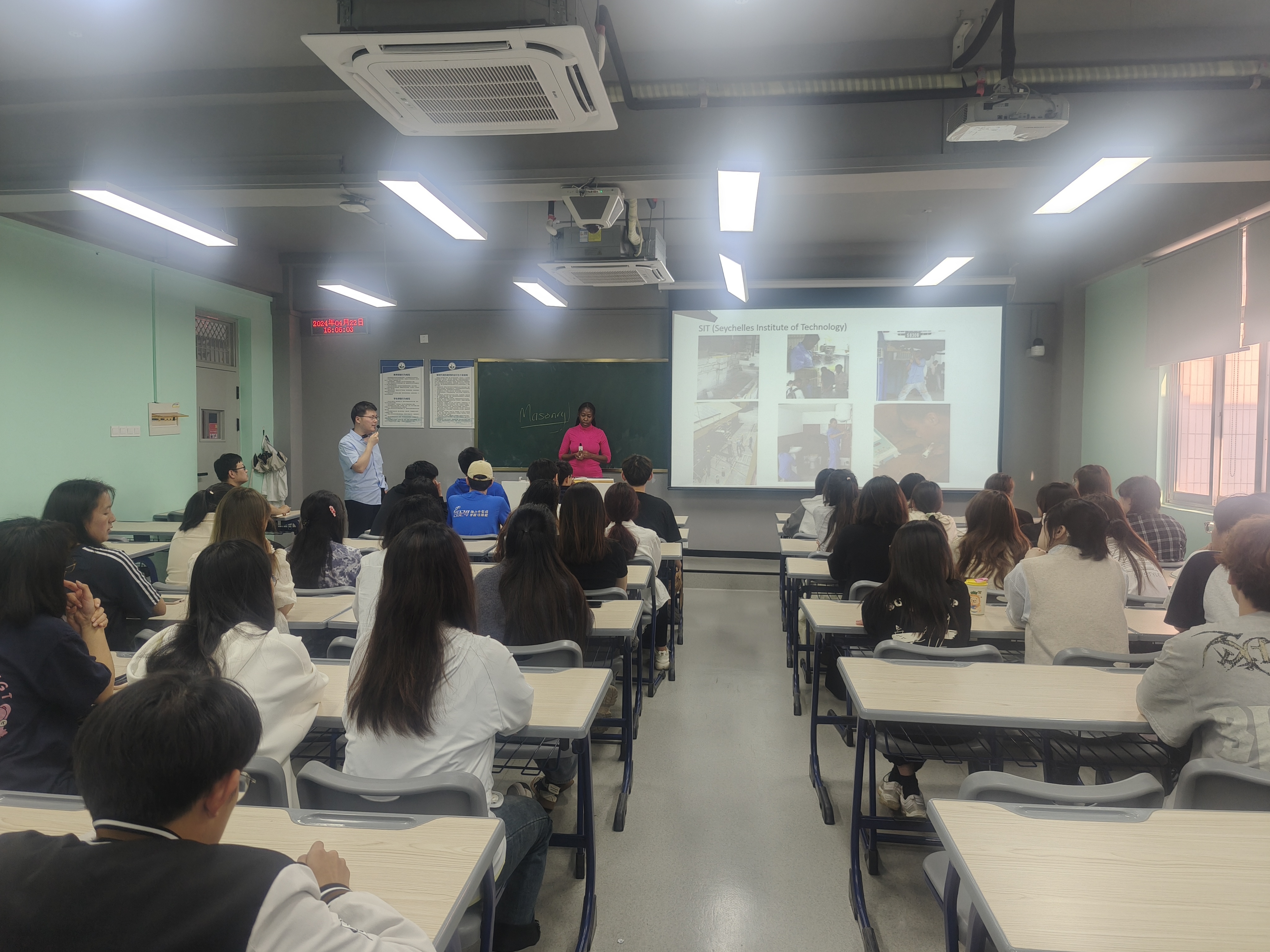4月22日下午,英国上市官网365邀请来自塞舌尔来华培训教师Marie-Michelle Madeleine为英国上市官网365师生做《塞舌尔文化介绍》讲座。