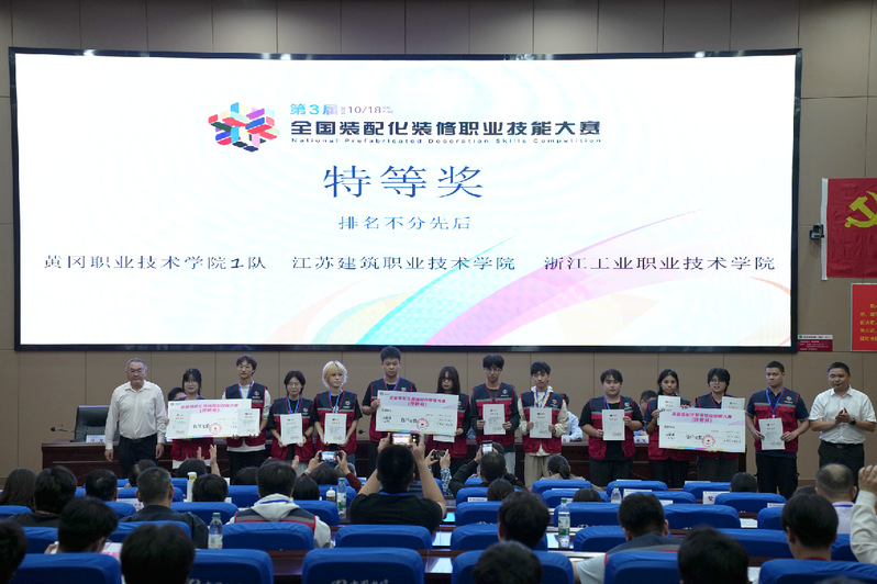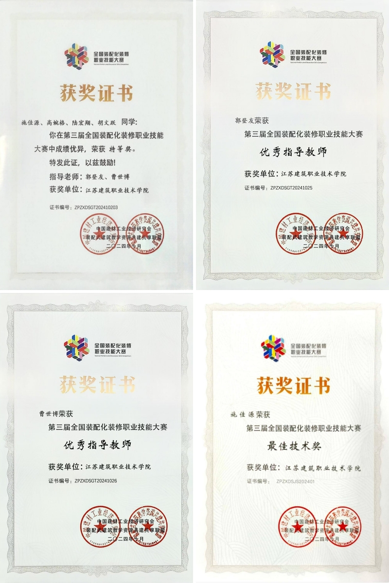 10月17日-18日,由中国建材工业经济研究会、全国装配化装修产教融合共同体主办,黄冈职业技术公司承办的全国第三届装配化装修职业技能大赛决赛在湖北黄冈举行。由公司英国上市官网365员工施佳源、高婉格、陆宏翔、胡文跃组成的参赛队伍获特等奖,同时施佳源荣获最佳技术奖,指导教师郭登友、曹世博获“优秀指导教师”称号。