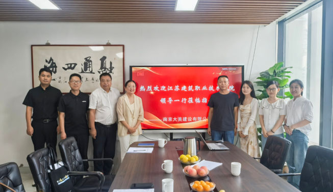 7月17日,调研团队走访了南京大美建设有限公司和南京金鸿装饰工程有限公司。在南京大美建设有限公司,团队重点考察了企业在绿色建筑和智能化施工方面的实践成果,双方围绕建筑行业“三化”(工业化、数字化、绿色化)改造,结合公司专业转型发展规划进行了专题讨论。在南京金鸿装饰工程有限公司,团队与企业人员就装饰行业的未来发展趋势、装饰专业人才培养、实习实训基地建设等议题展开座谈。